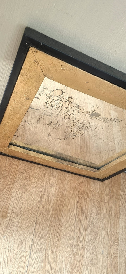 Espejo Único con Marco de Aluminio Negro y Madera Dorada