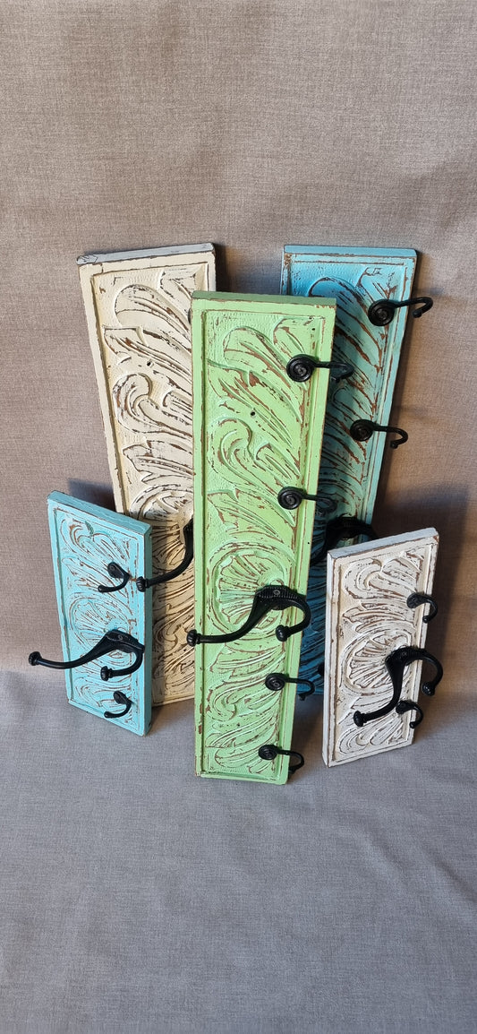 Percheros para llaves y accesorios hechos de tapas de cajones y maderas talladas