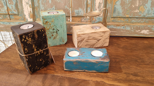 Portavela y aromatizador de madera de pallet
