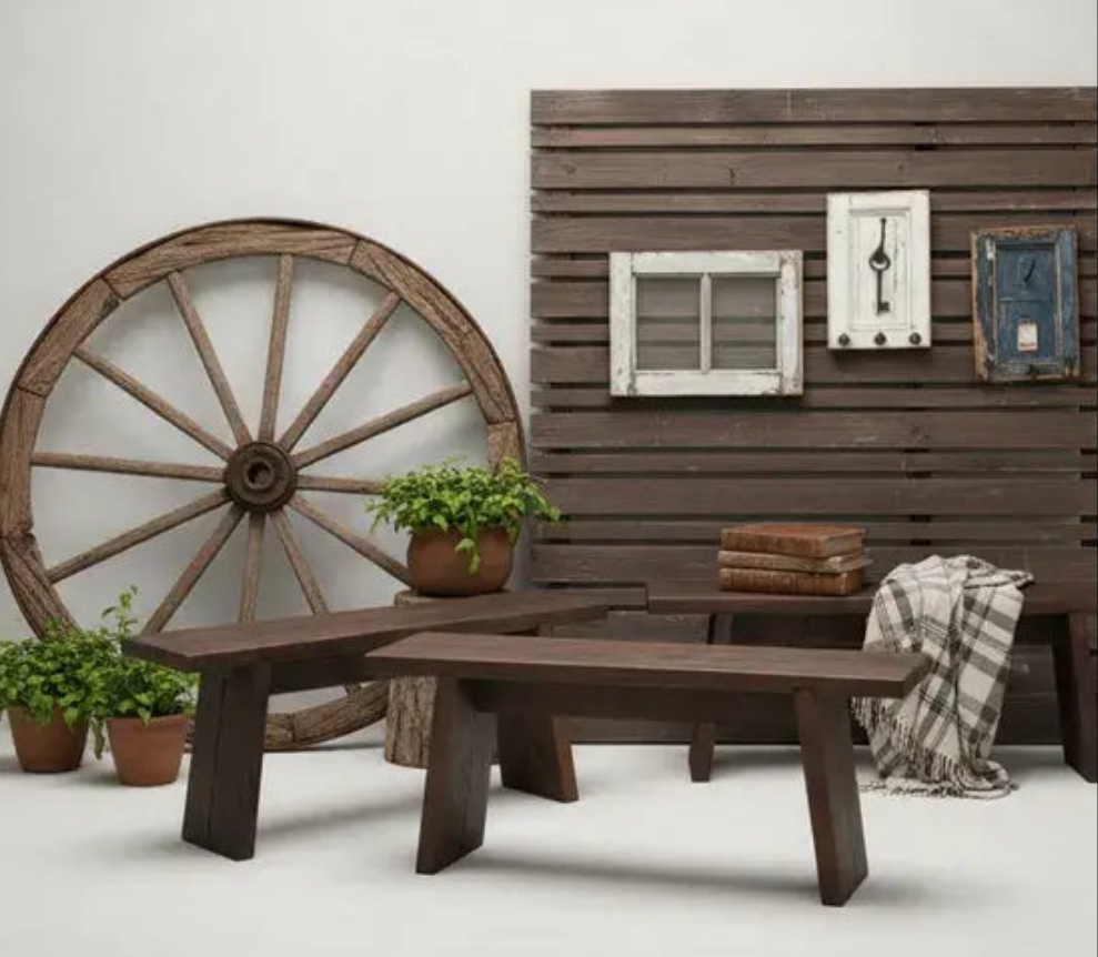 Estas bancas no solo son funcionales, sino que aportan un toque rústico y elegante a cualquier espacio. Su historia las convierte en piezas únicas con alma propia.