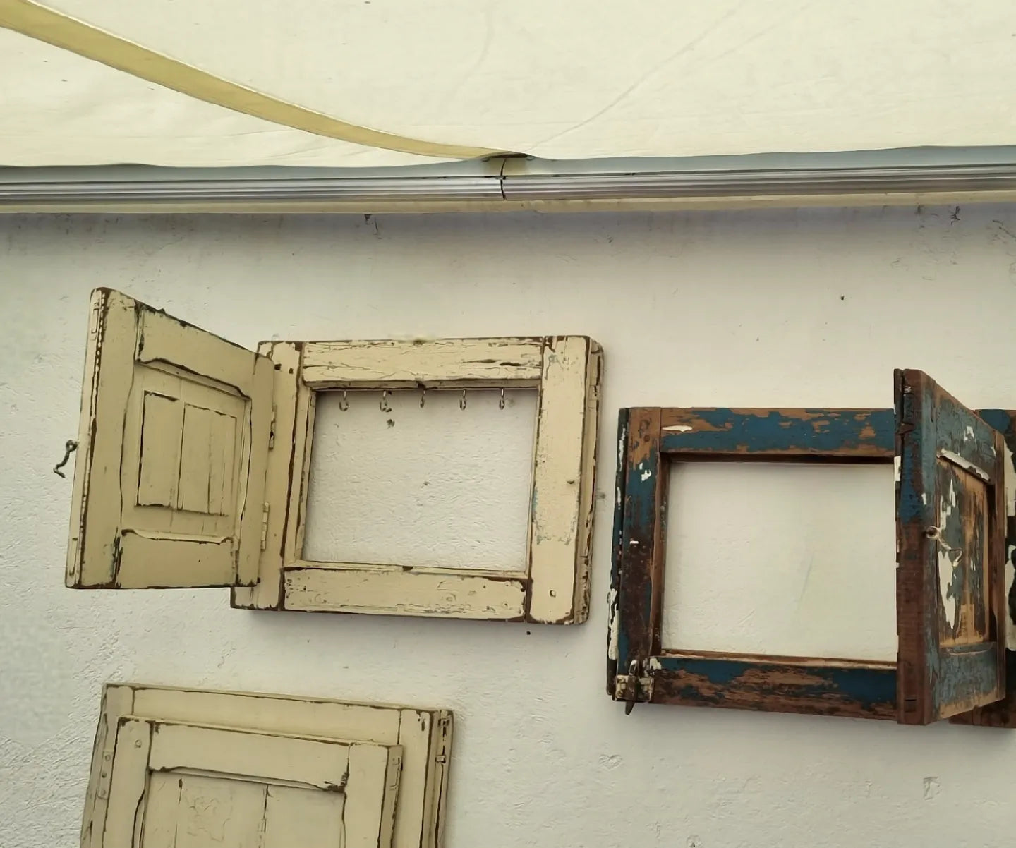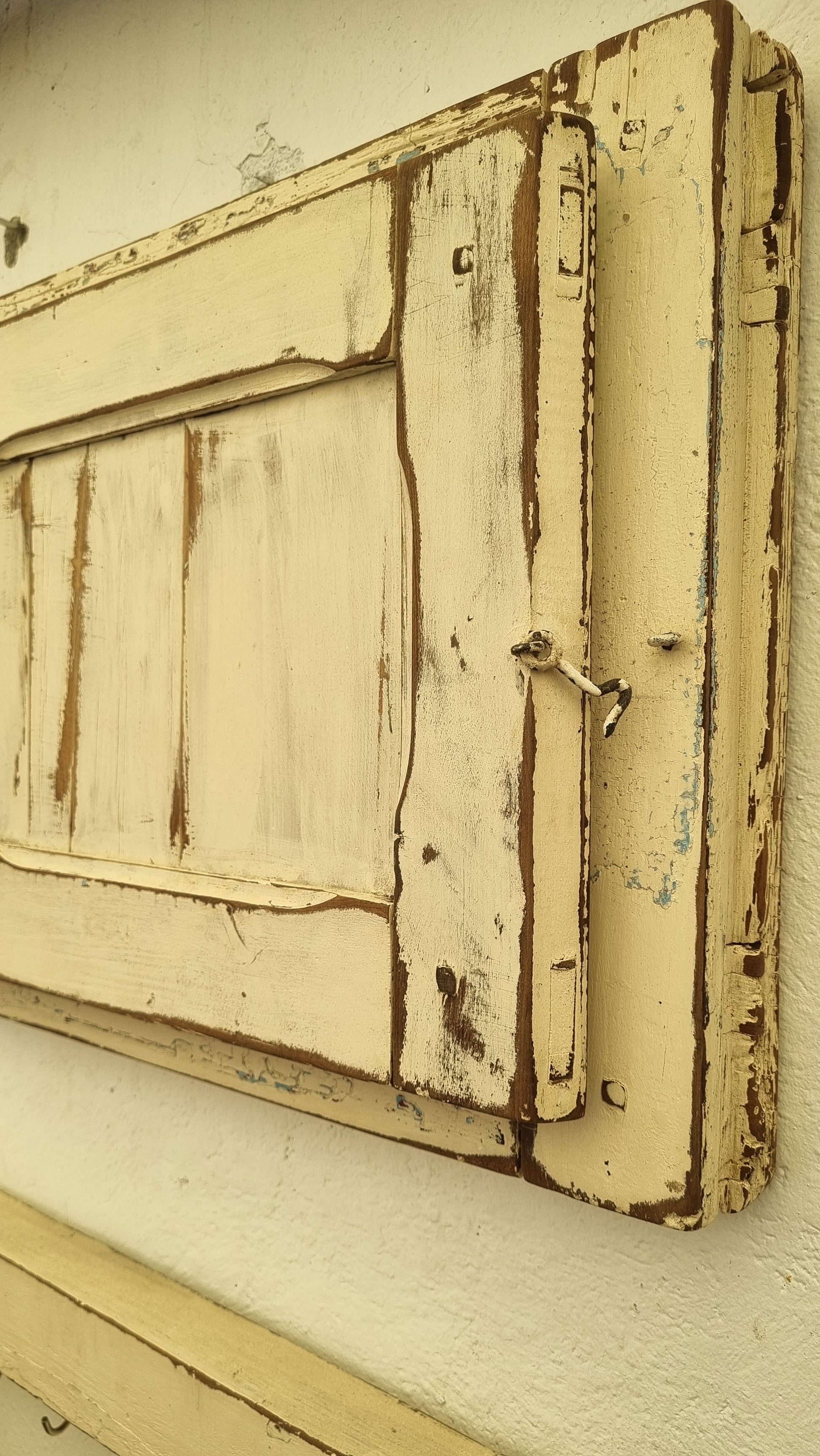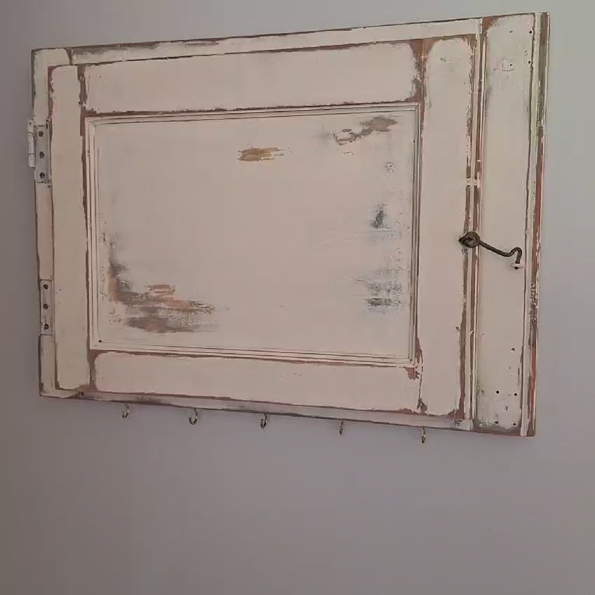 Antiguos postigos de madera que alguna vez sirvieron para proteger ventanas, ahora refaccionados para decorar y organizar llaves, accesorios, paños de cocina, chaquetas carteras, mochilas o sombreros.
