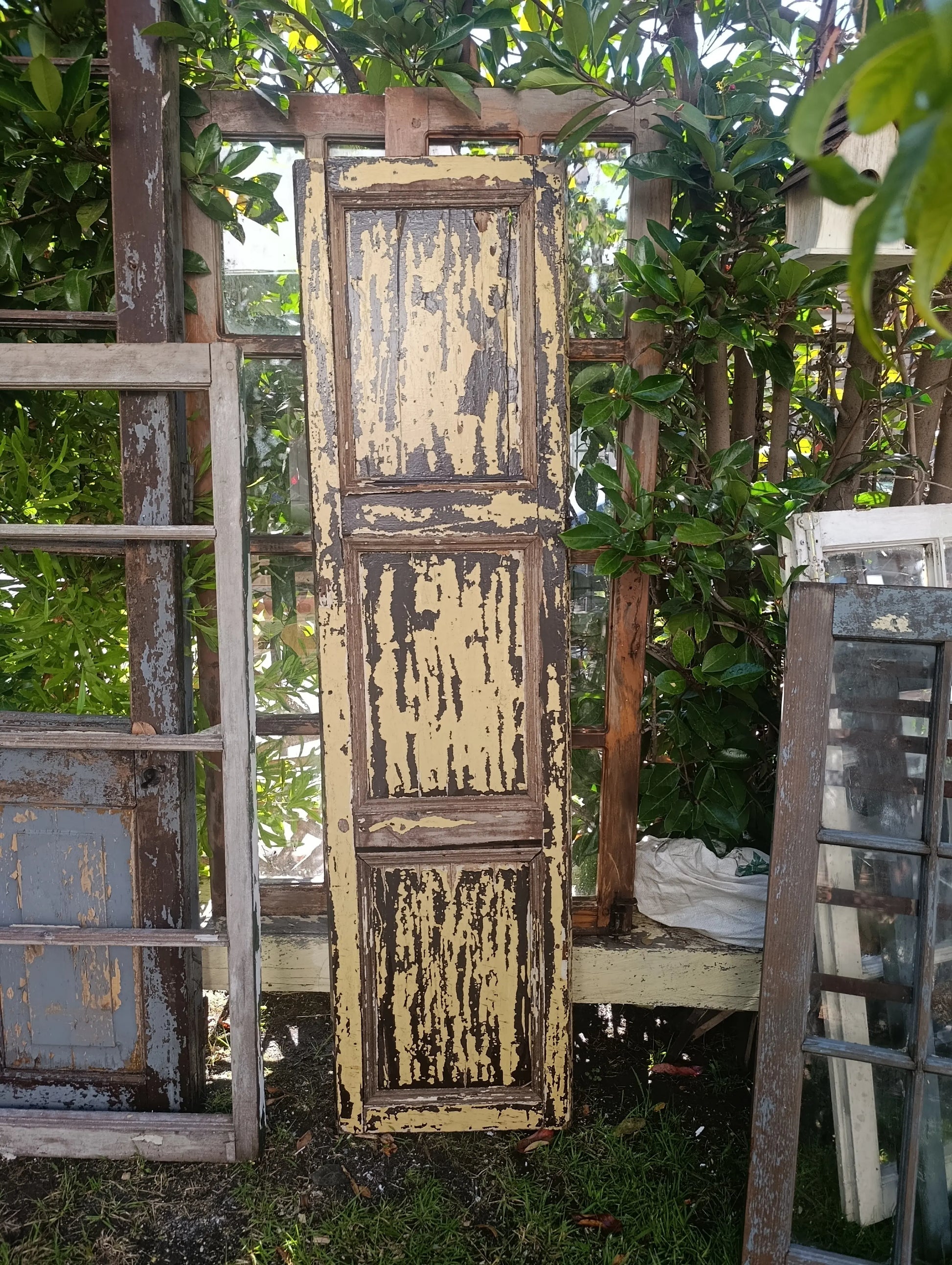 Postigo antiguo de madera con medidas 1.73 x 45 cm. Pieza única con historia y carácter, perfecta para usar como respaldo de cama o elemento decorativo.